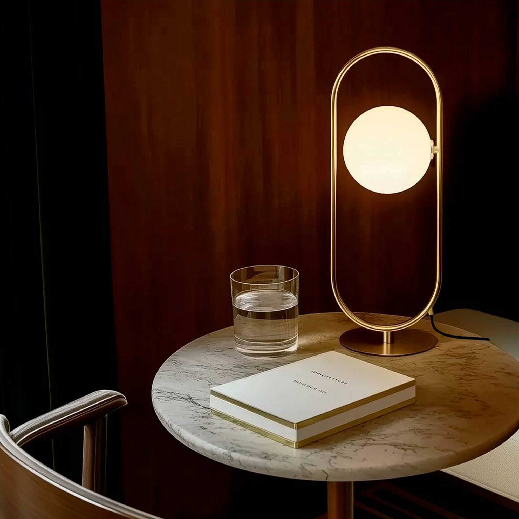 Stolna lampa Abbacus španjolskog brenda Aromas del Campo očarava elegantno zakrivljenom metalnom konstrukcijom u mat zlatnoj ili mat crnoj boji i nježnim opalim staklenim sjenilom koje ugodno raspršuje svjetlost. Zahvaljujući kompaktnim dimenzijama, savršena je za noćne ormariće, radne stolove ili pomoćne stolove, gdje pruža i funkcionalno i dekorativno osvjetljenje. Njezin skulpturalni dizajn dodaje profinjenu notu prostoru čak i kada nije upaljena. Lampa je opremljena prekidačem na kabelu i dolazi s jednom G9 LED žaruljom od 5 W u toploj bijeloj boji od 2700 K (uključena).