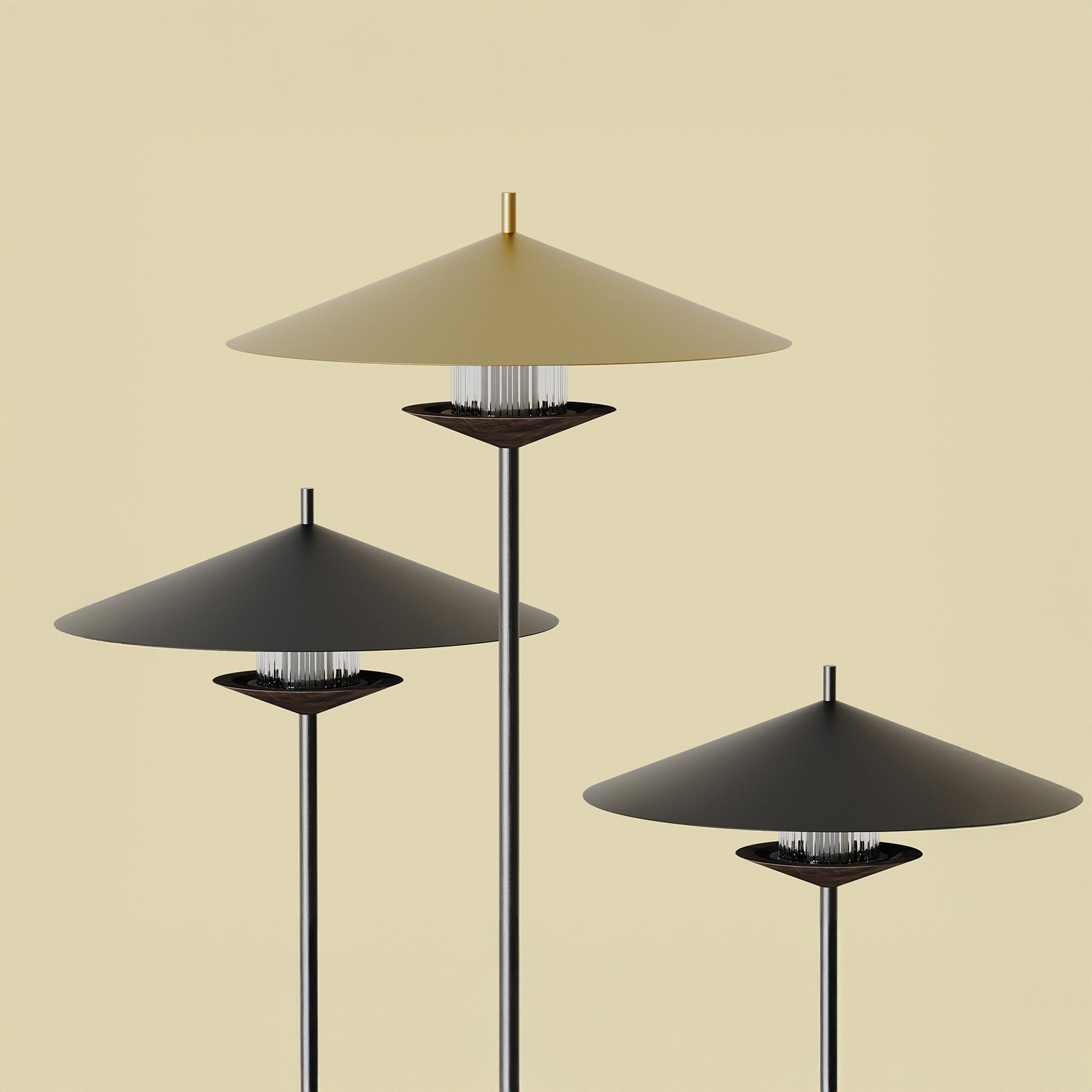 Stojací svítidlo Gehit je výsledkem precizního návrhu, který hledá rovnováhu mezi přírodou a moderní estetikou. Kombinace teplého dřeva ořechu a chladného kovu vytváří harmonii, která působí uklidňujícím dojmem, zatímco žebrované sklo rozptyluje světlo do jemných odlesků. Každý detail – od proporcí až po zvolenou barevnost – je navržen tak, aby svítidlo působilo elegantně i funkčně, a zároveň přinášelo do prostoru útulnost.