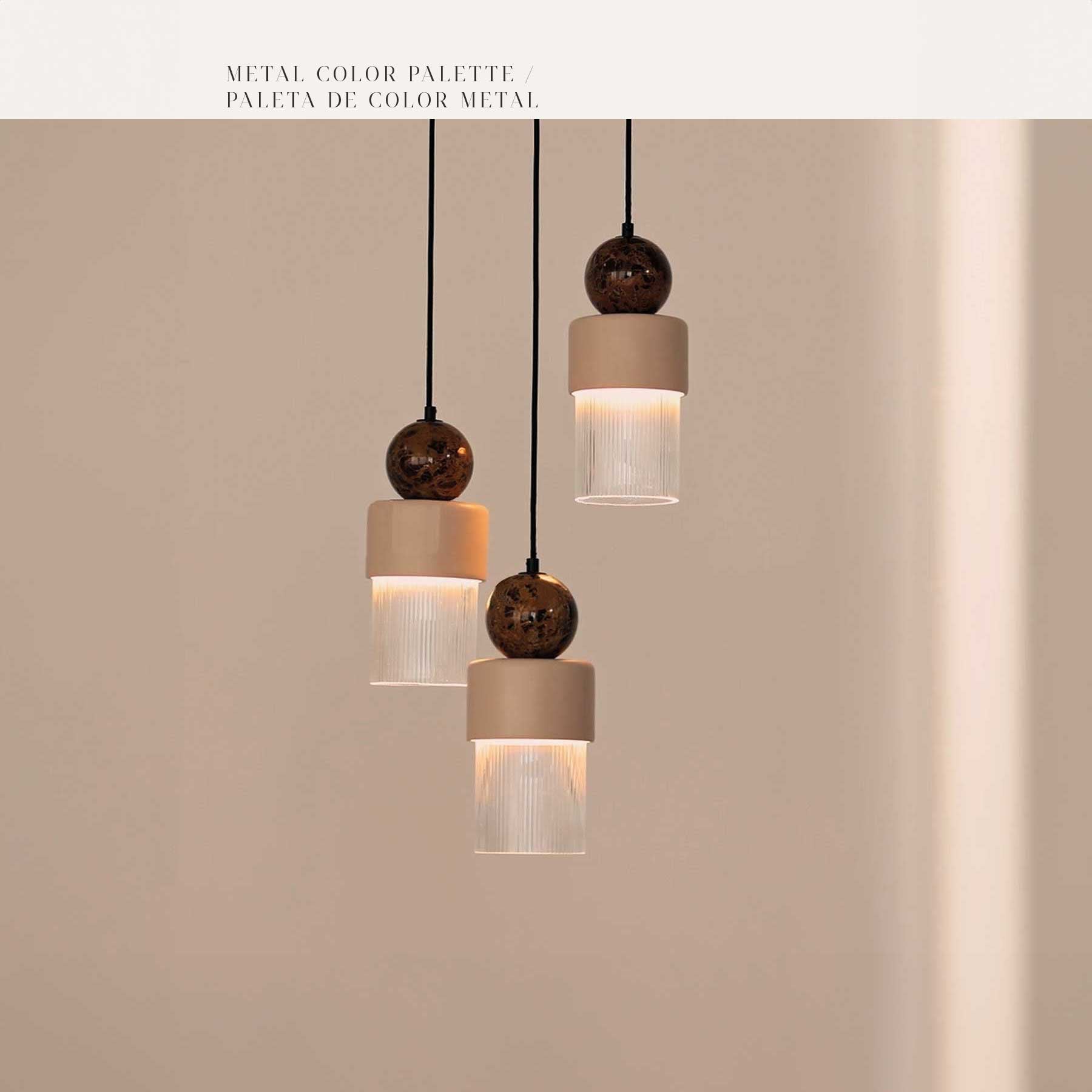 Luster Glamm dizajnirao je AC Studio za dekorativno osvjetljenje interijera i ističe se svojom jedinstvenom kombinacijom materijala i stila. Dizajn svjetiljke uključuje sferni mramorni element, keramički poklopac i prozirni stakleni difuzor s finim rebrastim uzorkom koji ravnomjerno raspršuje svjetlost. Površinska obrada može se promijeniti prema paleti boja i dostupnim završnim obradama navedenima u nastavku. Svjetiljka je opremljena LED tehnologijom s temperaturom boje od 2700 K, snagom od 7 W i svjetlosnim tokom od 700 lm, što osigurava ugodno i učinkovito osvjetljenje. Također je moguće prigušiti svjetlo pomoću TRIAC tehnologije, što vam omogućuje podešavanje intenziteta svjetla prema potrebi. Glamm će postati elegantan i stilski dodatak svakom interijeru.