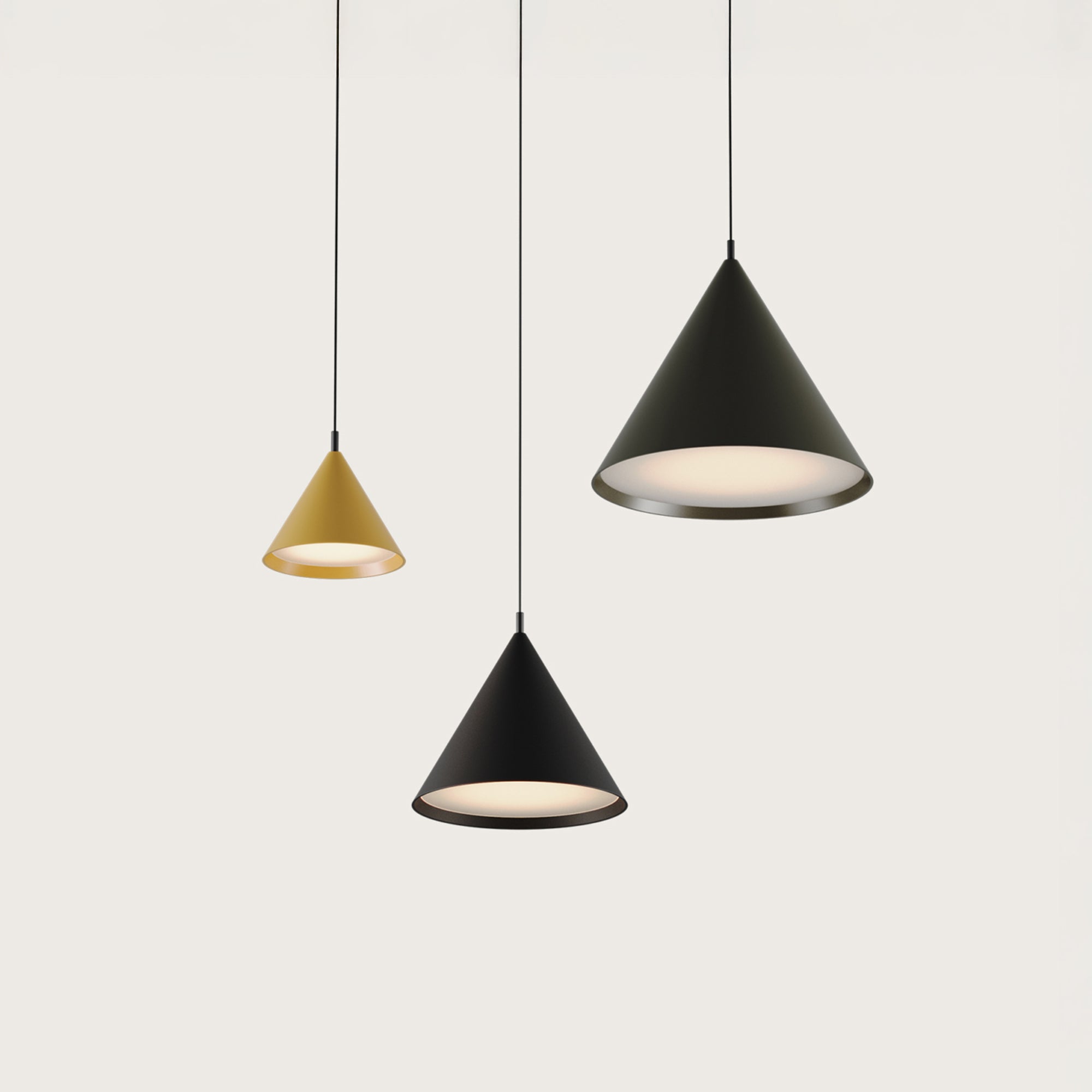 Nastavna svjetiljka Trag španjolskog brenda Aromas del Campo, dizajnirana od Pepe Fornasa, odlikuje se elegantnim i minimalističkim konusnim oblikom koji savršeno spaja funkcionalnost i estetiku. Svjetiljka je dostupna u tri veličine – 200 mm, 300 mm i 400 mm, što omogućuje njezinu upotrebu i pojedinačno i u raznim kombinacijama. Više modularnih sklopova moguće je stvoriti samo od modula iste veličine, što je idealno za moderne prostore i dizajnerske instalacije. Rasvjetno tijelo opremljeno je integriranim LED izvorom svjetlosti i može se prigušiti pomoću TRIAC sustava, što omogućuje glatko podešavanje intenziteta svjetlosti prema potrebi. Svi modeli mogu se objesiti s gornjom stranom okrenutom prema gore za klasično izravno osvjetljenje ili s gornjom stranom okrenutom prema dolje, stvarajući meko ambijentalno svjetlo koje stvara ugodnu atmosferu u prostoru. Kombinacija kvalitetnih materijala i precizne izrade čini model Trag svestranim i elegantnim elementom prikladnim za stambene i poslovne interijere.