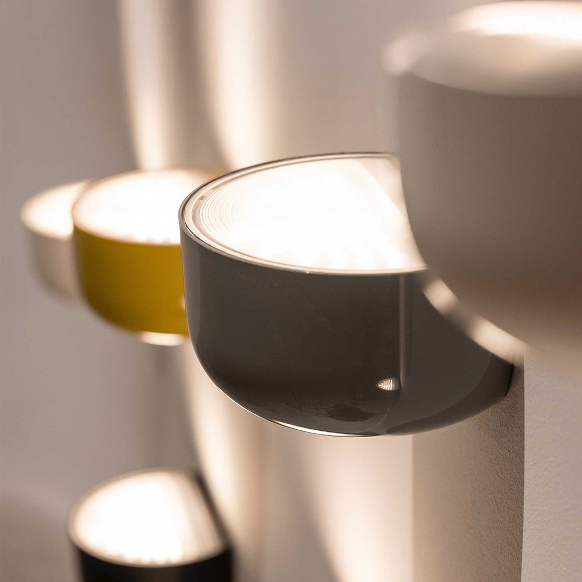 Zidna svjetiljka Bellhop Wall Up talijanske tvrtke Flos, koju su 2022. dizajnirali Edward Barber i Jay Osgerby, elegantno je neizravno svjetlo koje se stilizirano uklapa u arhitekturu. Tijelo rasvjetnog tijela izrađeno je od obojenog polikarbonata, a difuzor od poluprozirnog polikarbonata oblikovanog brizganjem s posebnom površinskom teksturom za ravnomjernu difuziju svjetlosti. Zahvaljujući suvremenoj LED tehnologiji s vijekom trajanja od preko 50.000 sati, rasvjetno tijelo nije samo snažno, već i održivo – LED modul može jednostavno zamijeniti profesionalni tehničar. Bellhop Wall Up ne koristi ljepilo tijekom instalacije, što omogućuje jednostavno recikliranje i zamjenu pojedinih dijelova. Svjetiljka koristi Flosovu optičku tehnologiju nove generacije za učinkovito usmjeravanje svjetla prema gore i dostupna je u raznim toplim i pastelnim nijansama kako bi prostoru dodala suptilan bojački naglasak.