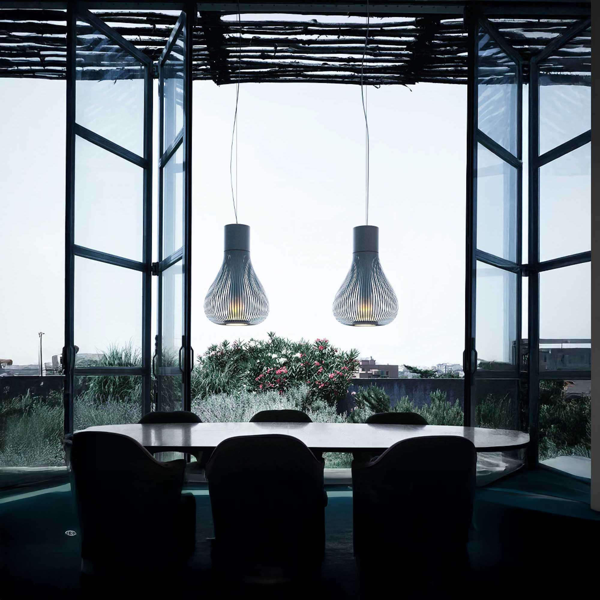 Chasen viseća lampa talijanskog brenda Flos, koju je dizajnirala Patricia Urquiola 2007. godine, fascinantna je kombinacija tehničke izrade i poetskog dizajna. Tijelo lampe izrađeno je od kemijski fotograviranog nehrđajućeg čelika, nadopunjeno borosilikatnim difuzorom i zaštićeno slojem tekuće boje. Postolje je od tlakovanog aluminija, a stropna rozeta od poliamida ojačanog staklenim vlaknima pričvršćena je na prešani i pocinčani čelični nosač. Rasvjetno tijelo omogućuje regulaciju oblika i intenziteta svjetla mehaničkim pokretom – lamele se otvaraju ili zatvaraju, mijenjajući njegovu siluetu. Ono je ovješeno čeličnim kabelom i u boji usklađenim napojnim kabelom od FEP/PVC-a. Chasen tako postaje polimorfna svjetlosna skulptura koja nudi neiscrpan raspon vizualnih mogućnosti.