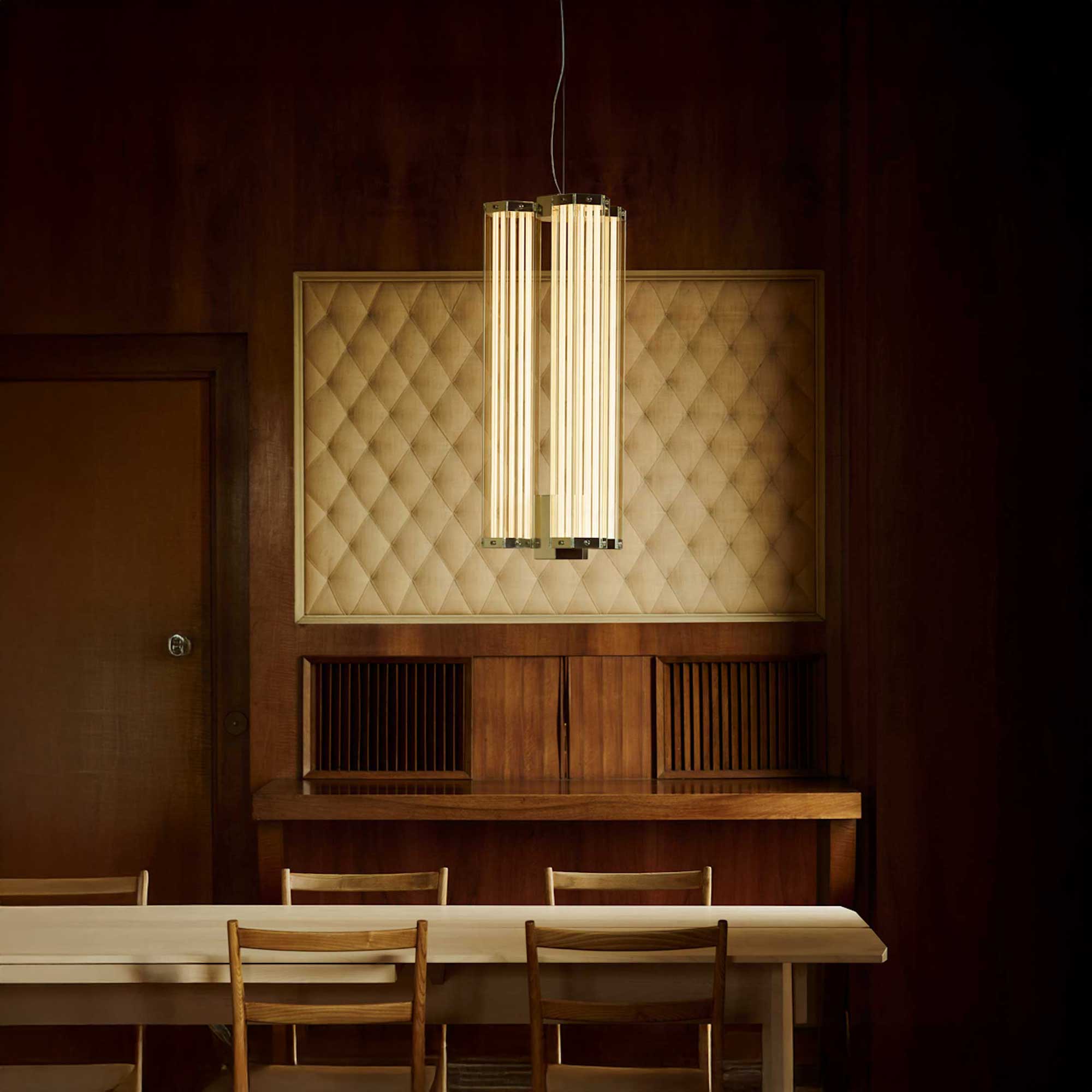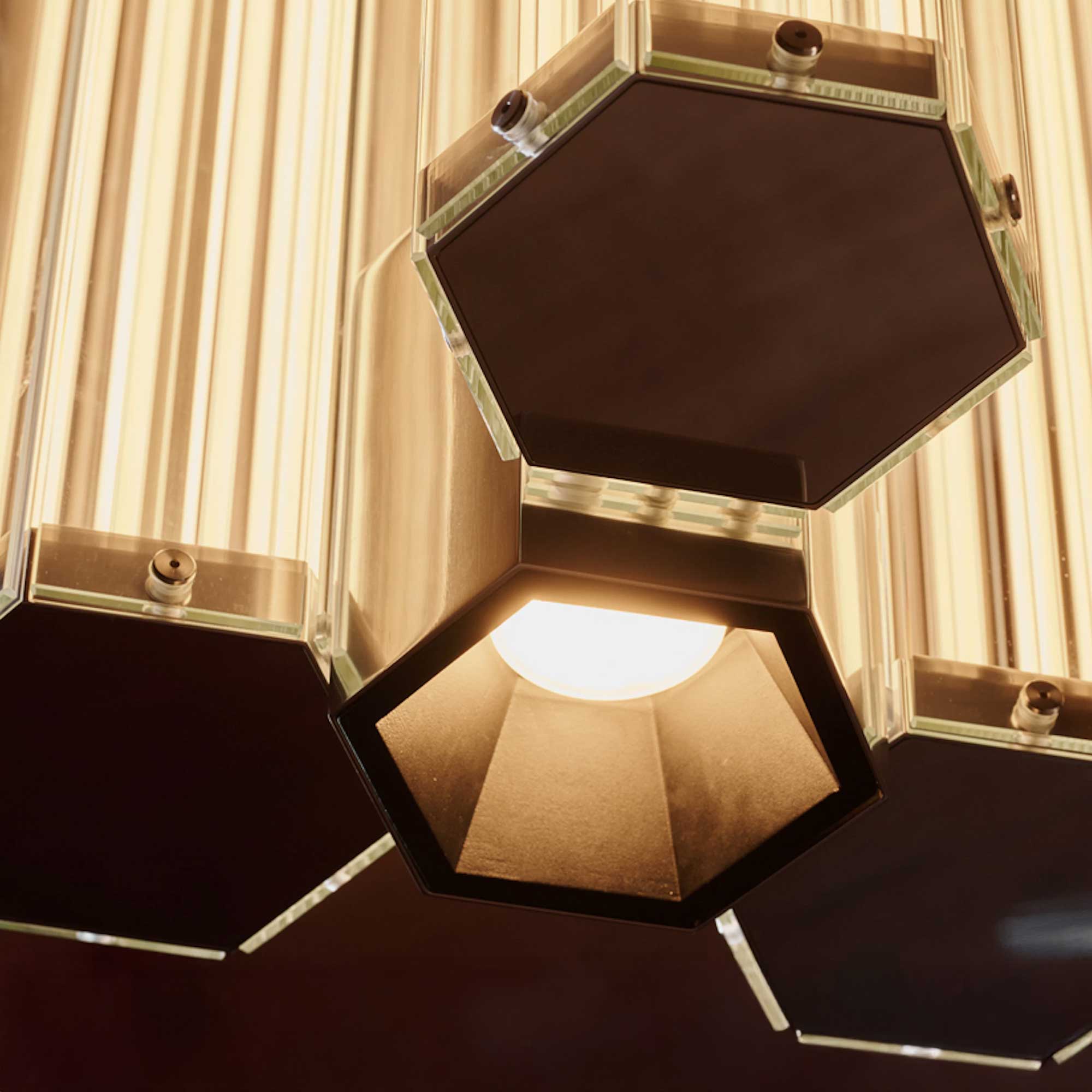 Nastavna lampa SuperWire talijanskog brenda Flos, koju je 2025. dizajnirao Formafantasma, prva je modularna rasvjetna kolekcija ovog dizajnerskog dua za Flos. Ovaj poetski, a opet tehnički sofisticirani projekt crpi inspiraciju iz nasljeđa staklara 20. stoljeća. Lampa se sastoji od šesterokutnih ravnih staklenih površina povezanih poliranim aluminijskim elementima, a cijelo njezino tijelo osvjetljava tanka, meka i fleksibilna LED traka duljine do jednog metra, koja emitira toplo i ujednačeno svjetlo. Ova LED tehnologija može se lako zamijeniti, što je iznimno među LED rasvjetnim tijelima bez klasičnih žarulja. Visjeca verzija također uključuje skriveni usmjereni modul za naglašavanje staklenih površina, koji nadopunjuje meko, raspršeno svjetlo vertikalnih modula. SuperWire je dizajniran kao sustavno rješenje koje se može fleksibilno proširiti i prilagoditi različitim zahtjevima projekta, što ga čini idealnim elementom za stvaranje rasvjetnih instalacija sa snažnim skulpturalnim izrazom.