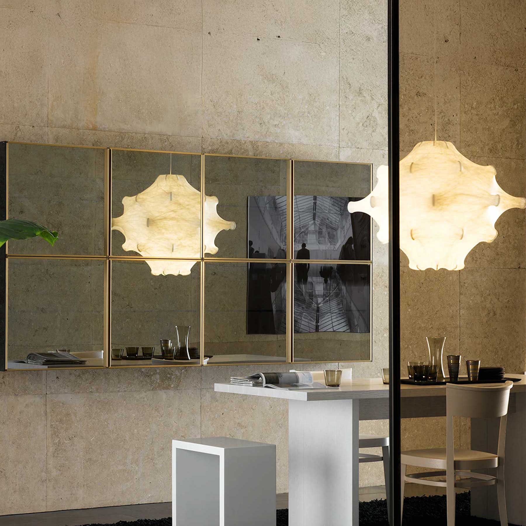 Nastavna lampa Taraxacum talijanske tvrtke Flos dizajnirali su braća Achille i Pier Giacomo Castiglioni 1960. godine. Lampa pruža raspršeno svjetlo zahvaljujući unutrašnjosti od čelika obloženog bijelim praškom, koja je prekrivena jedinstvenom smolom u obliku kukuljice koja tvori difuzor, a zaštićena je prozirnim premazom za elegantan i izdržljiv završni izgled.