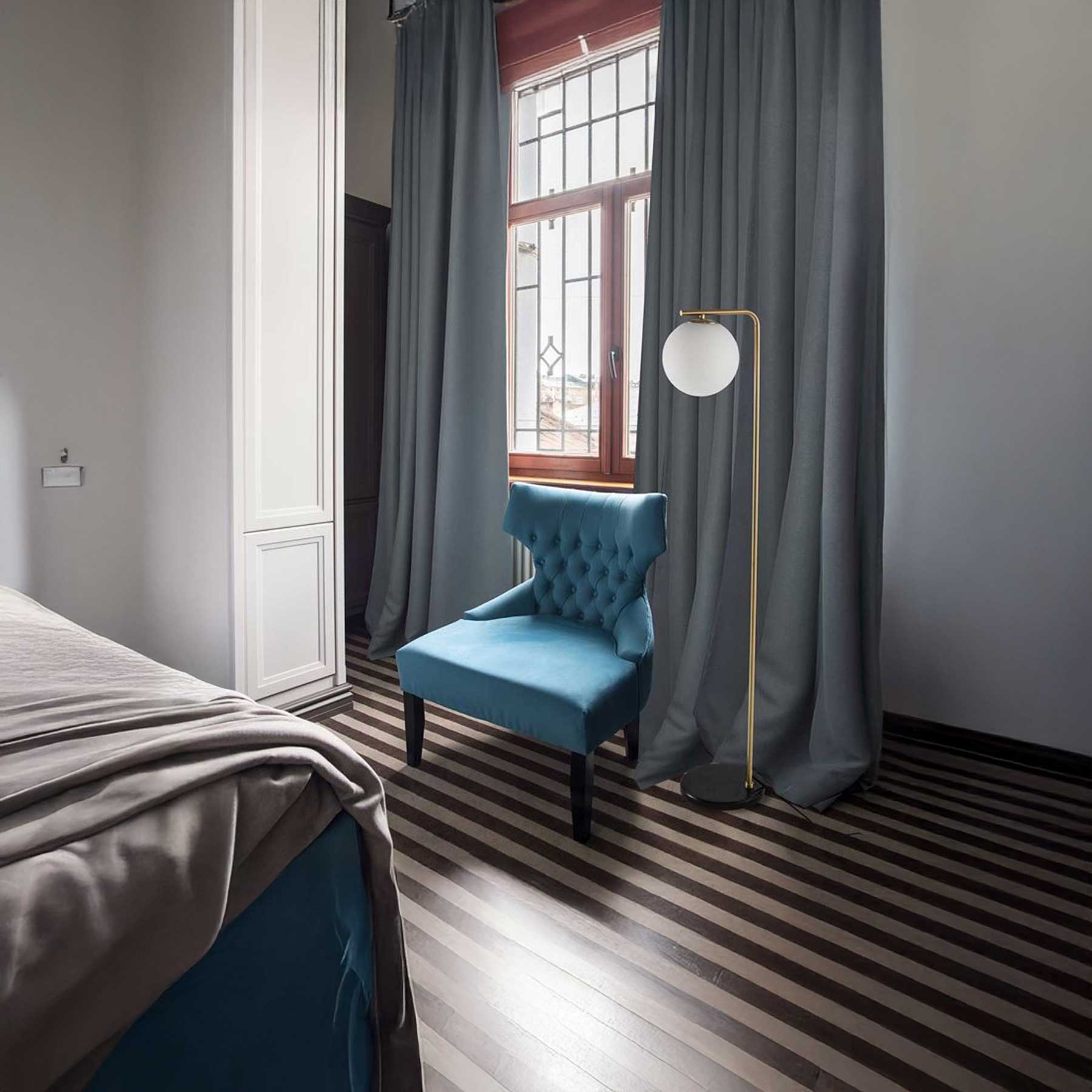 Podna svjetiljka Alvarez grčke tvrtke Nova Luce elegantna je kombinacija modernog dizajna i klasične estetike. Sastoji se od vitke metalne cijevi u mesinganoj završnoj obradi, na vrhu s sferičnim sjenilom od mliječno bijelog stakla koje ugodno raspršuje svjetlost. Stabilnost osigurava crna mramorna podloga. Lampa je dizajnirana za sijalicu E27, što vam omogućuje korištenje različitih vrsta izvora svjetlosti prema vašim željama. Zahvaljujući svom minimalističkom, a opet profinjenom izgledu, pogodna je za moderne i klasične interijere kao dodatno osvjetljenje, na primjer u dnevnom boravku, spavaćoj sobi ili čitaonici.