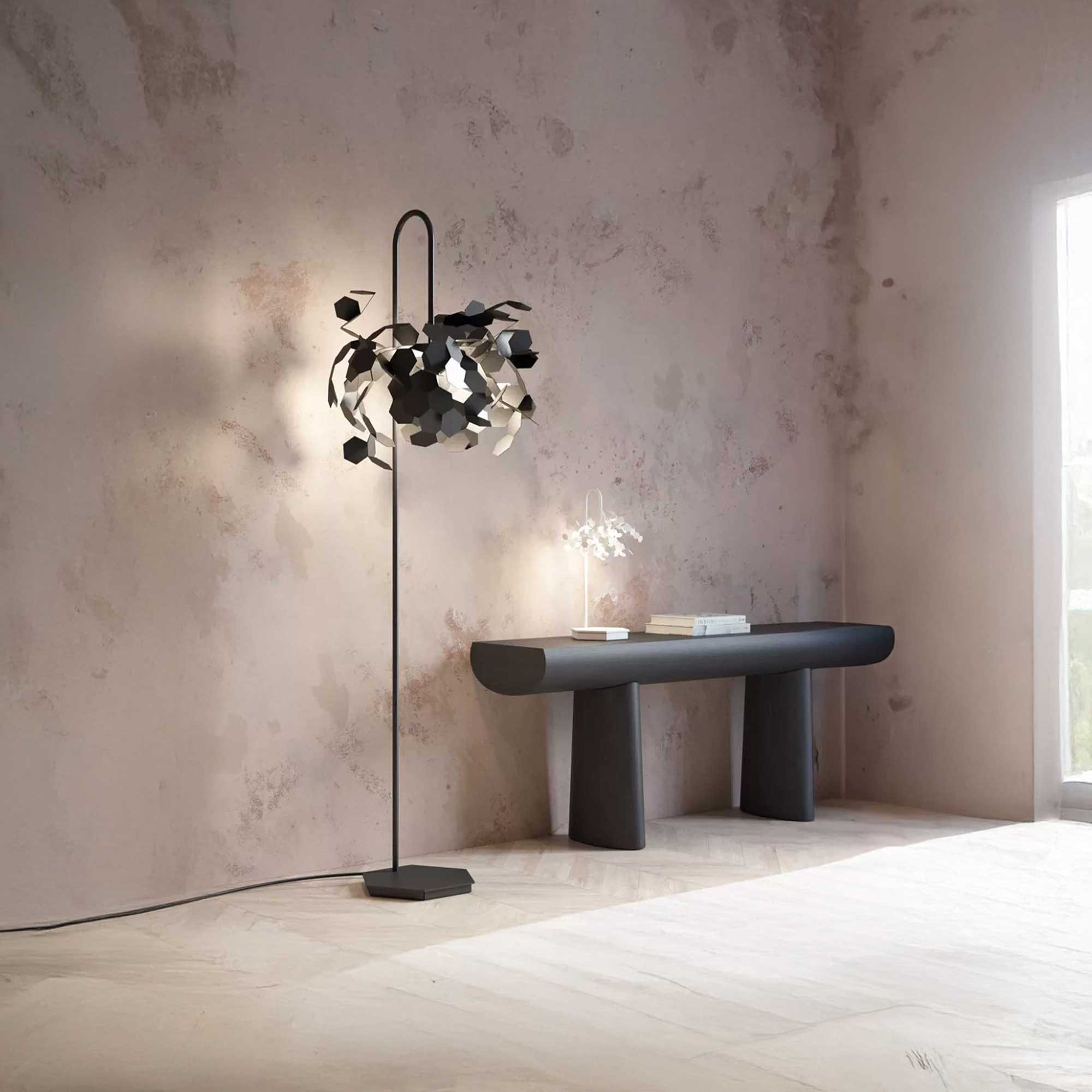 LED podna lampa Andromeda renomiranog talijanskog brenda Zava, dizajna Polea Uliana, jedinstvena je kombinacija modernog umjetničkog dizajna i energetski učinkovite tehnologije. Njezina glavna značajka su šesterokutni metalni difuzori koje je moguće oblikovati rukom, što korisnicima omogućuje da izgled lampe prilagode točno po svojoj želji. Zahvaljujući integriranom LED izvoru, Andromeda nudi snažno, ali ugodno mekano svjetlo koje je energetski učinkovito i dugotrajno. Kada je uključena, lampa stvara upečatljive uzorke svjetla i sjenovite dizajne koji naglašavaju okolne zidove i pod, stvarajući umjetničku atmosferu. LED podna lampa Andromeda idealan je izbor za one koji traže dizajnersko podno osvjetljenje s mogućnošću individualnog oblikovanja, koje je funkcionalno, ekonomično i estetski upečatljivo.
